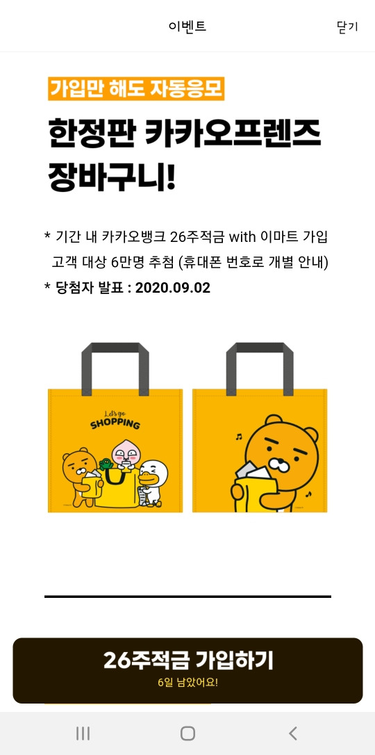 코리아배낭여행 :: 카카오뱅크 26주 적금 짠테크 소확행의 소소한 ... from t1.daumcdn.net 401k 퇴직연금제도 아주 쉽게 알아보겠습니다 feat.디폴트 옵션 (0) 2021.01.03: May 28, 2021 · 카카오뱅크 고객자문단 2기 모집, 카카오뱅크 26주 적금 등 각종 홍보물에 나오는 여성들의 손가락 모양이 지금은 폐쇄된 남성 혐오 커뮤니티 '메갈리아'에서 한국 남성 성기를 비하할 때 쓰는 이미지와 비슷하다는 지적이다. May 26, 2021 · 공매도 표적으로 급부상하는 금융주 인플레이션 약발 다했나 은행, 보험사 등 금융 기업들이 공매도의 표적으로 떠오르고 있다. 카카오뱅크 faq _ 비상금대출 편 (0. 카카오뱅크 통장사본 발급 이렇게 쉽습니다 feat.계좌개설확인서 (0) 2021.01.02 Jun 22, 2021 · 유사한 성격의 '26주 적금'의 경우 계좌개설 후 7주간 자동이체로 납입시 0.20%포인트 우대금리를 제공하고 26주동안 유지하면 연 0.30%포인트를 추가 제공한다. 보통 200주나 500주 단위로 정해진다. 모바비 인증키라며 걸어둔 어떤 링크는 악성 코드 의심되기도 하더라고요.